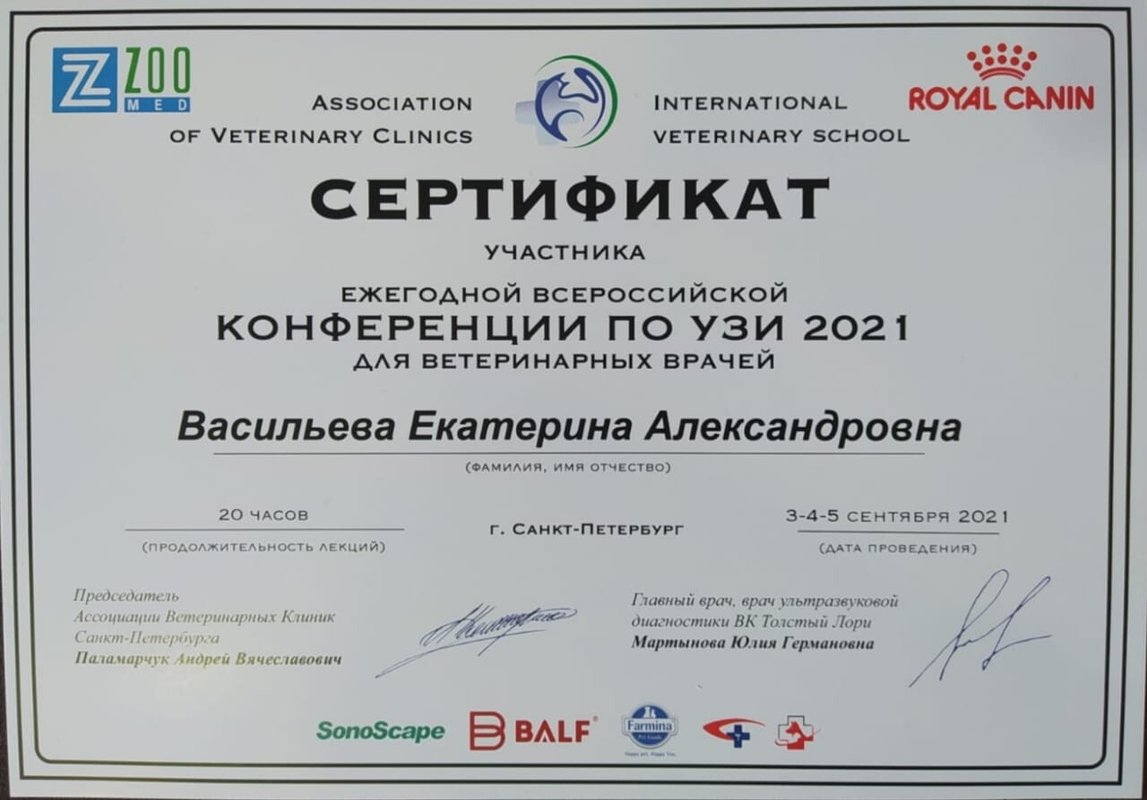 2019, 2020, 2021гг - Конференции по УЗИ на базе Association of veterinary clinic