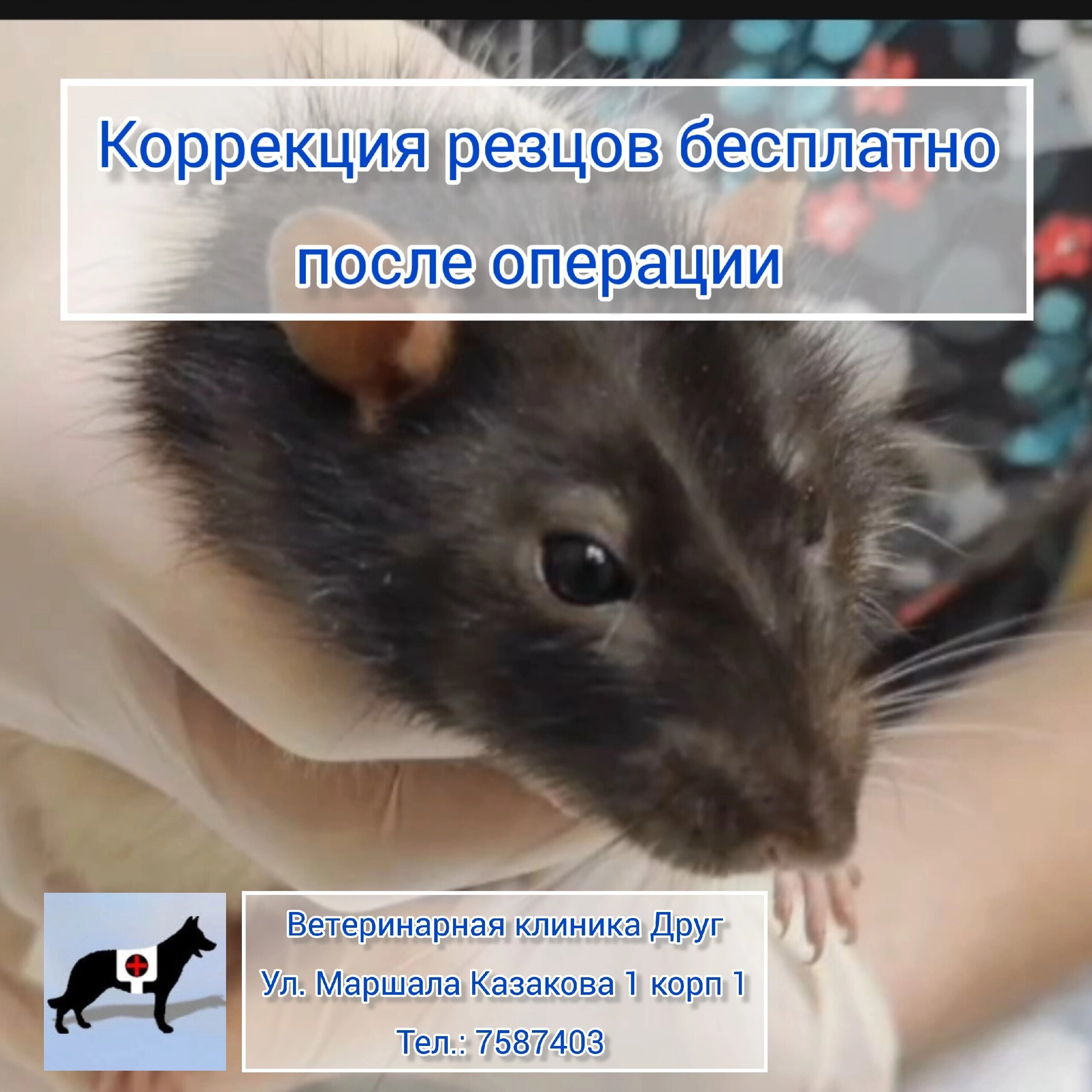 Впервые обратились в клинику, ходили с крысой к ратологу. Персонал хороший, качественно и быстро все сделали. Врач профессионал, провела диагностику, определила проблему у животного и назначила лечение, которое помогло. Все прошло прекрасно и устроило.